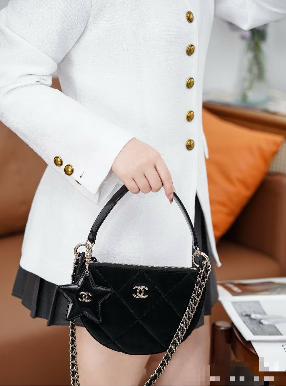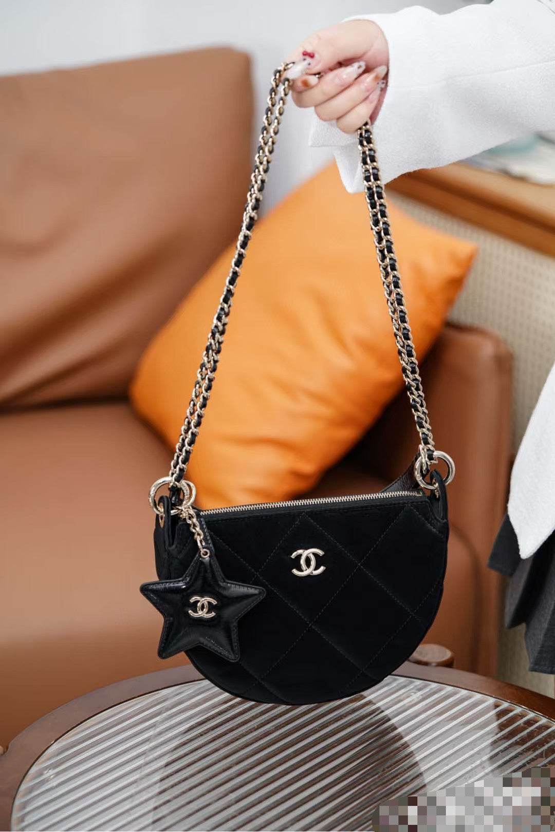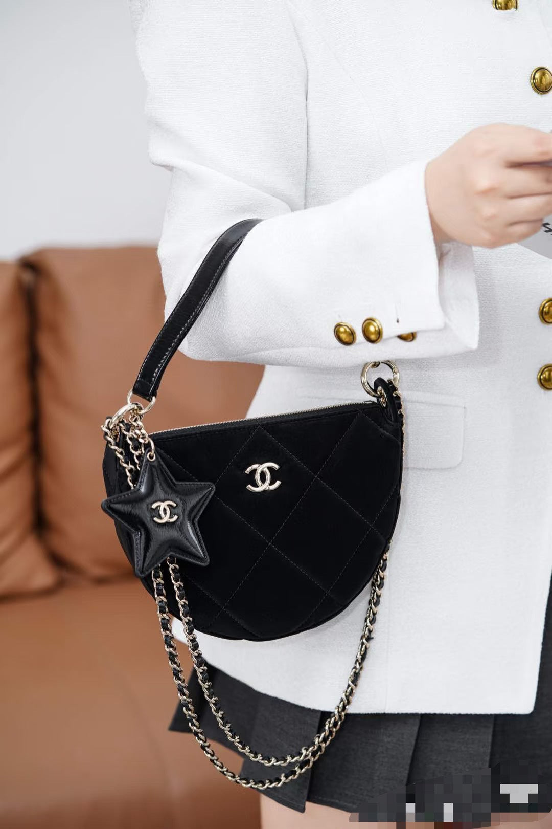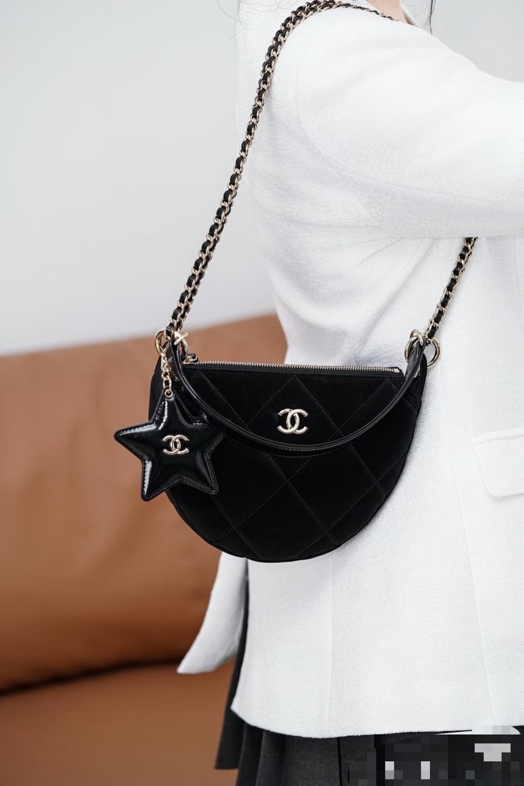 Elevate your style with the 25N Coco Neige Velvet Five-Pointed Star Crescent Bag. This chic accessory features a unique five-pointed star design, expertly crafted from luxurious velvet for a soft touch and elegant appearance. The crescent shape combines functionality with a trendy silhouette, making it perfect for any occasion. With ample space for your essentials and a sophisticated aesthetic, this bag is the ultimate statement piece for fashion-forward individuals. Transform your outfit with this stunning accessory today!