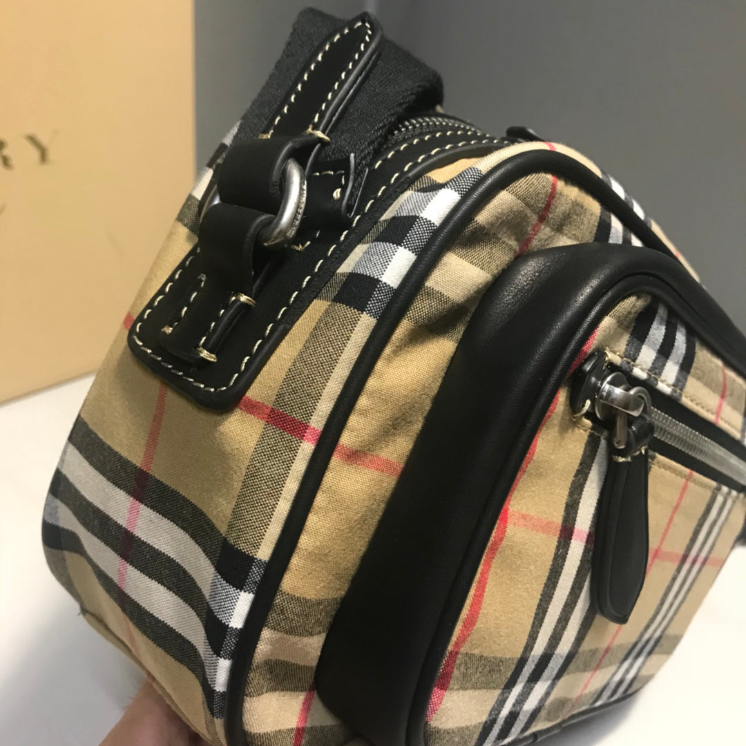 Introducing the Original B's vintage plaid cross-body bag, expertly crafted from high-quality bonded cotton for a timeless look. This stylish bag features elegant leather trimmings and showcases a jacquard worsted logo for a sophisticated touch. The adjustable mesh nylon strap allows for versatile styling options, easily transitioning between cross-body and shoulder wear. With dimensions of 22.5 × 8.2 × 14.5 cm, it's the perfect accessory for any occasion. Elevate your wardrobe with this classic yet contemporary piece!